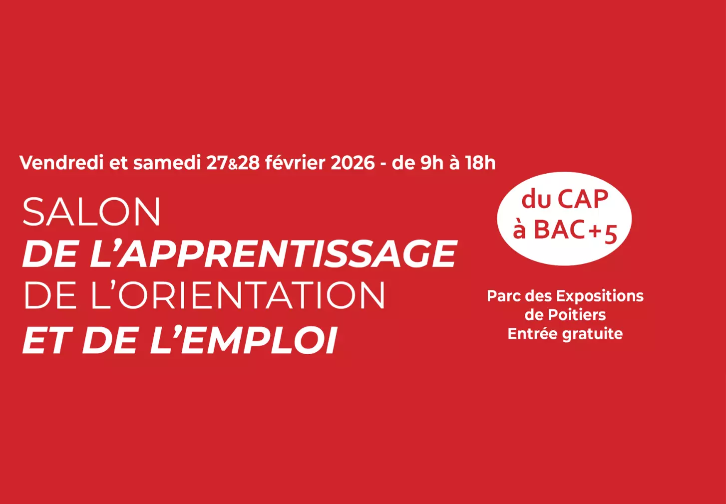 C’est pourquoi nous serons présents, pour la seconde année consécuritve au salon de l’orientation, de l’apprentissage et de l’emploi de Poitiers les 27 et 28 février 2026 – Hall B – Stand F6 au Parc des expositions de Poitiers.